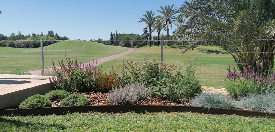 En marzo de 2021 realizamos la implantación del jardín de una vivienda unifamiliar en un Campo de Golf y os mostramos como está quedando.