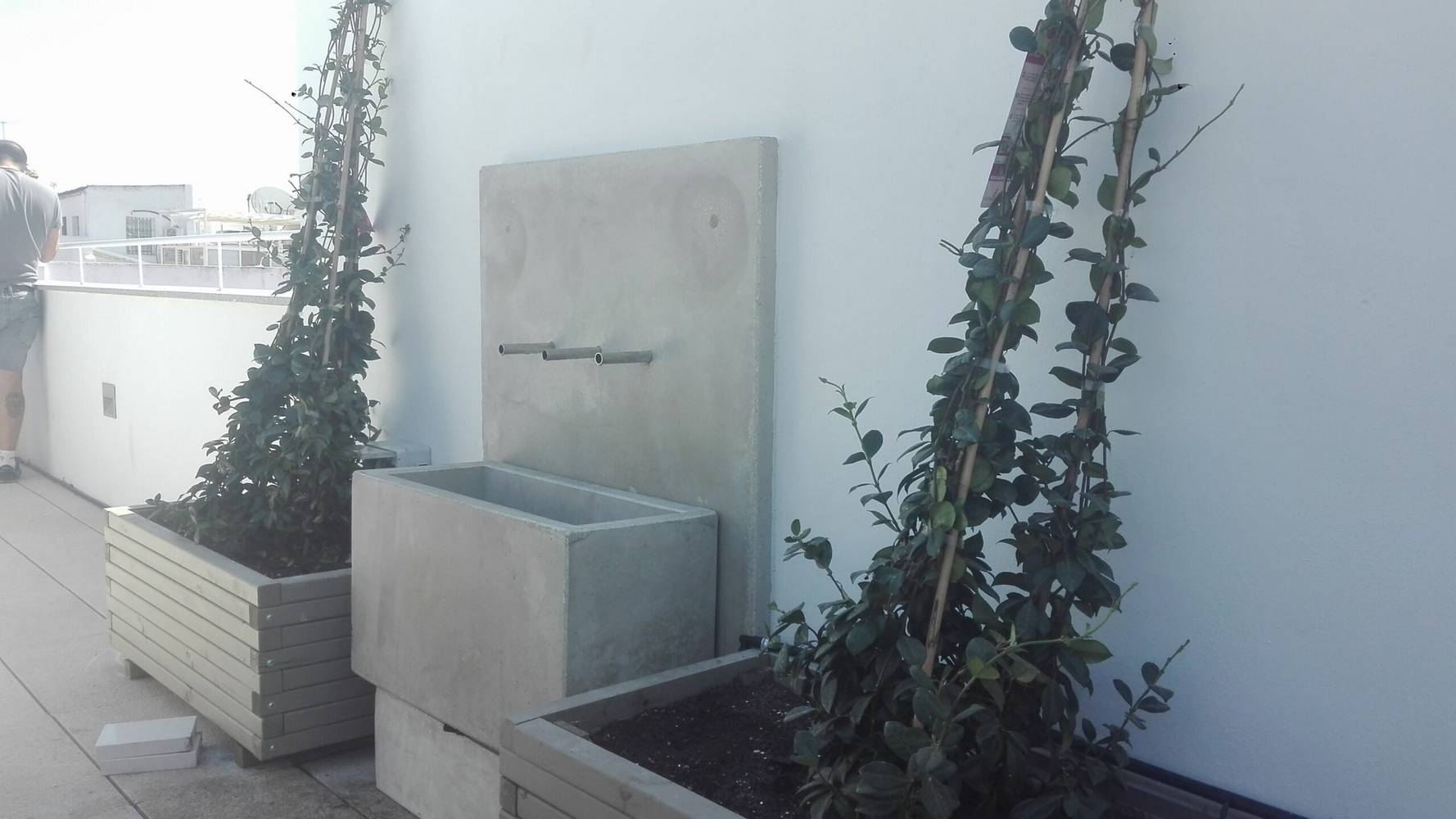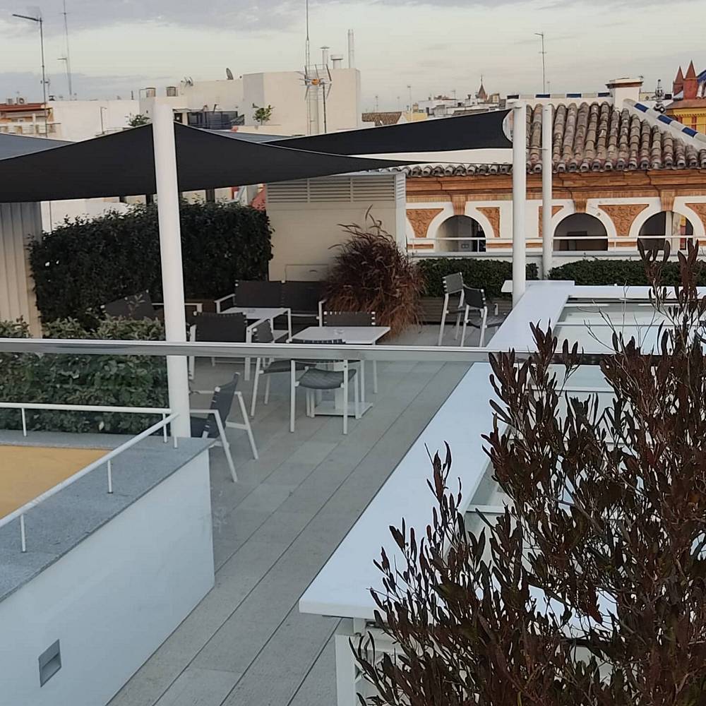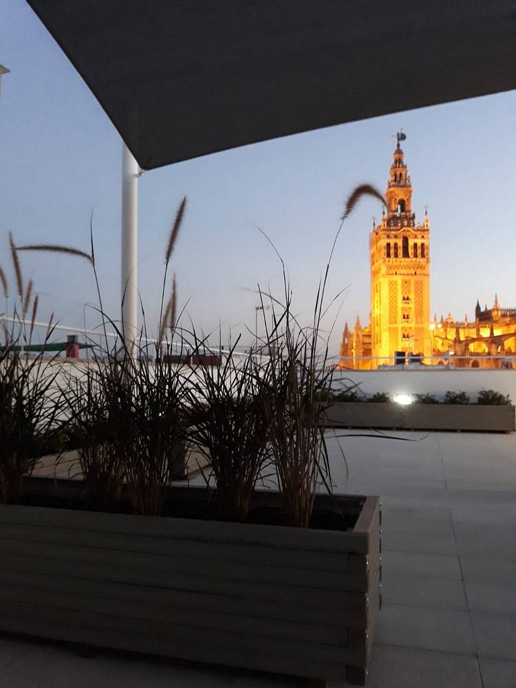 Vestir una terraza ubicada bajo la mirada de la Giralda exige ser modesta y poco pretenciosa. Aportar la vegetación estrictamente necesaria para que el espacio sea aún si cabe más agradable y naturalice las construcciones. Se usaron en el proyecto jardineras hechas a medida para cada espacio y se diseñó una pequeña fuente de pared para refrescar con su sonido las calurosas noches estivales.