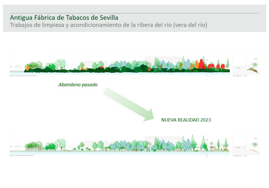 Las obras de limpieza y restauración del talud de la ribera de la Antigua Fábrica de Tabacos de Altadis comienzan el próximo día 1 de marzo 2023.